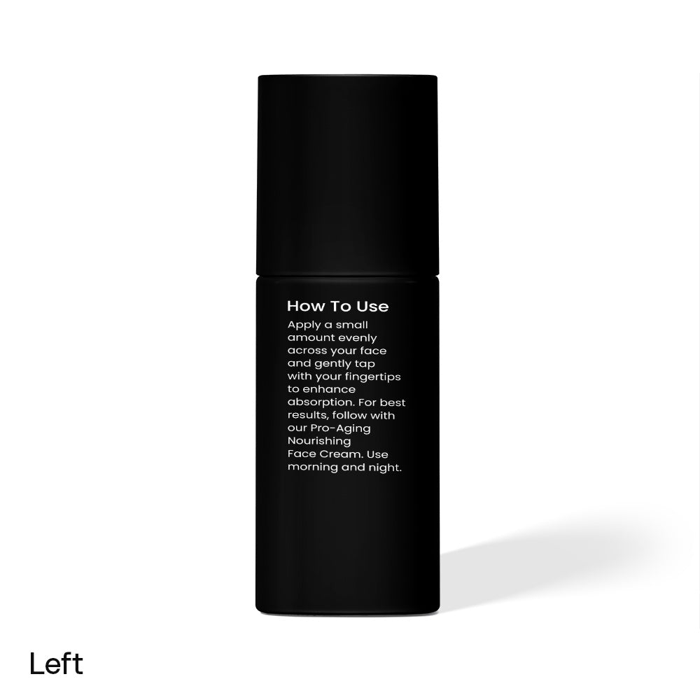Apply a small amount evenly across your face and gently tap with your fingertips to enhance absorption. For best results, follow with our Pro-Aging Nourishing Face Cream. Use morning and night.