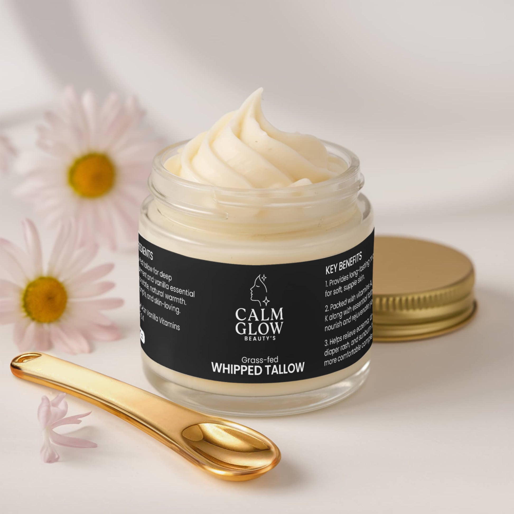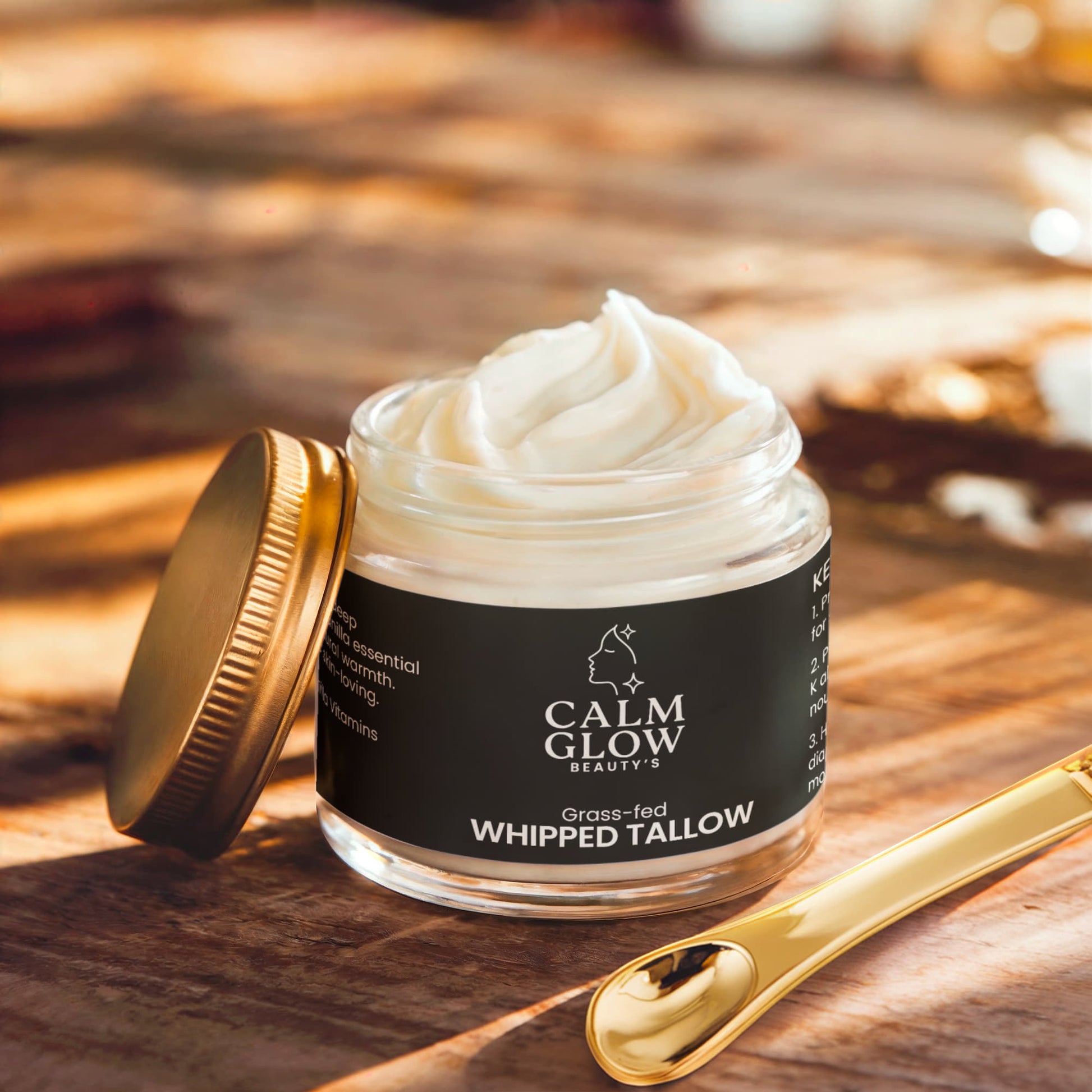 Grass-Fed Tallow – Rendered from the fat of grass-fed beef, this animal fat is rich in skin-compatible fatty acids and vitamins A, D, E, and K, deeply nourishing and repairing the skin.